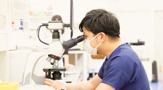 先輩獣医師について、午後の仕事を見学。(診察、処置)