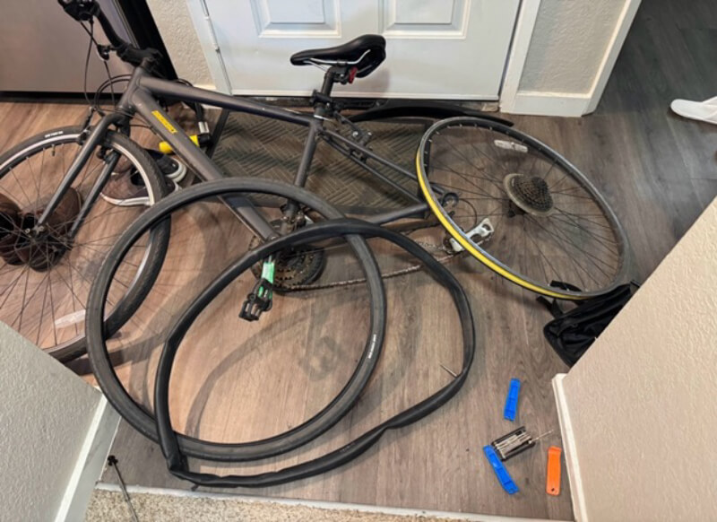 パンク修理中の自転車