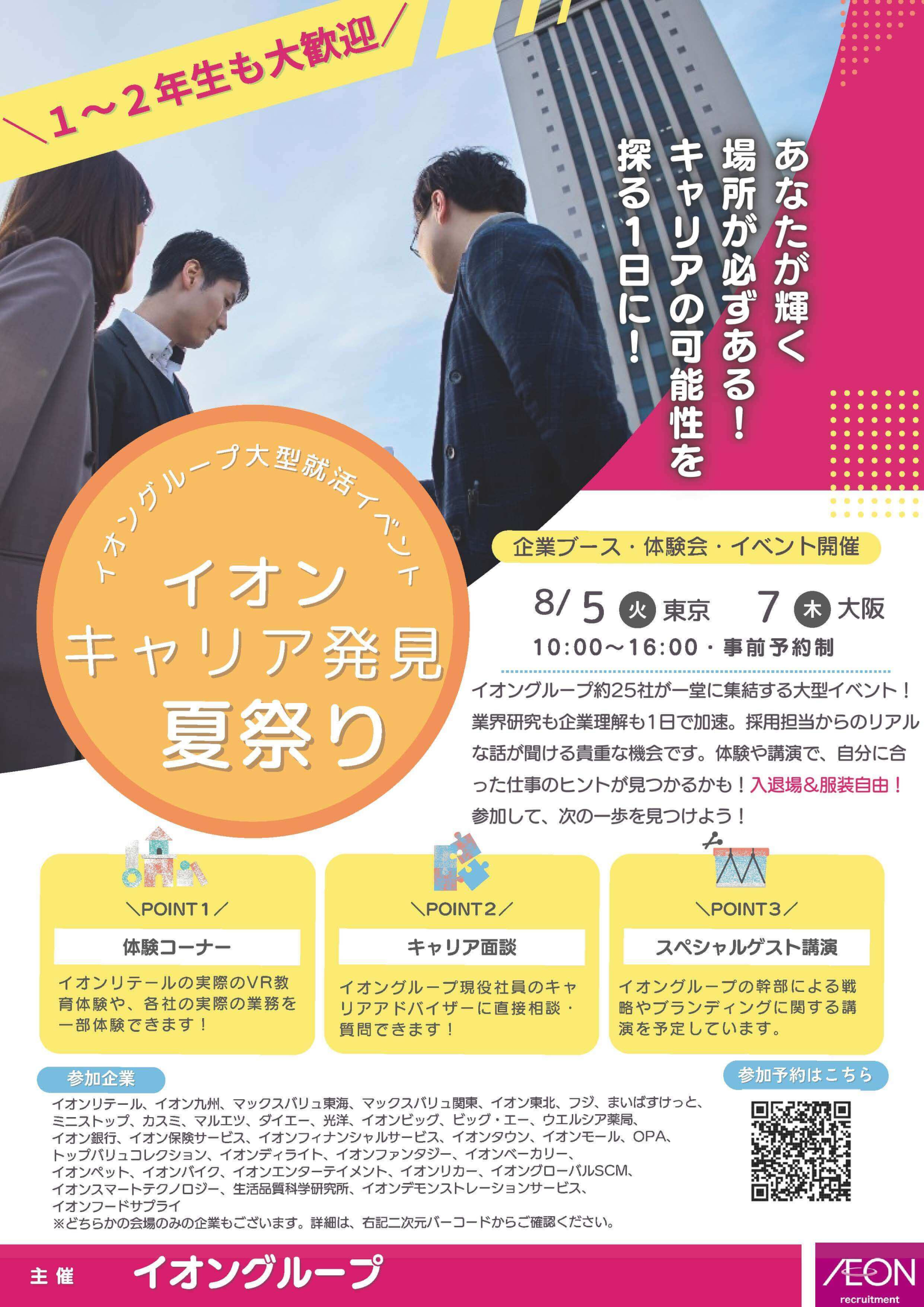 イオングループが主催する、『イオン・キャリア発見夏祭り』合同採用イベントへの出展が決まりました。