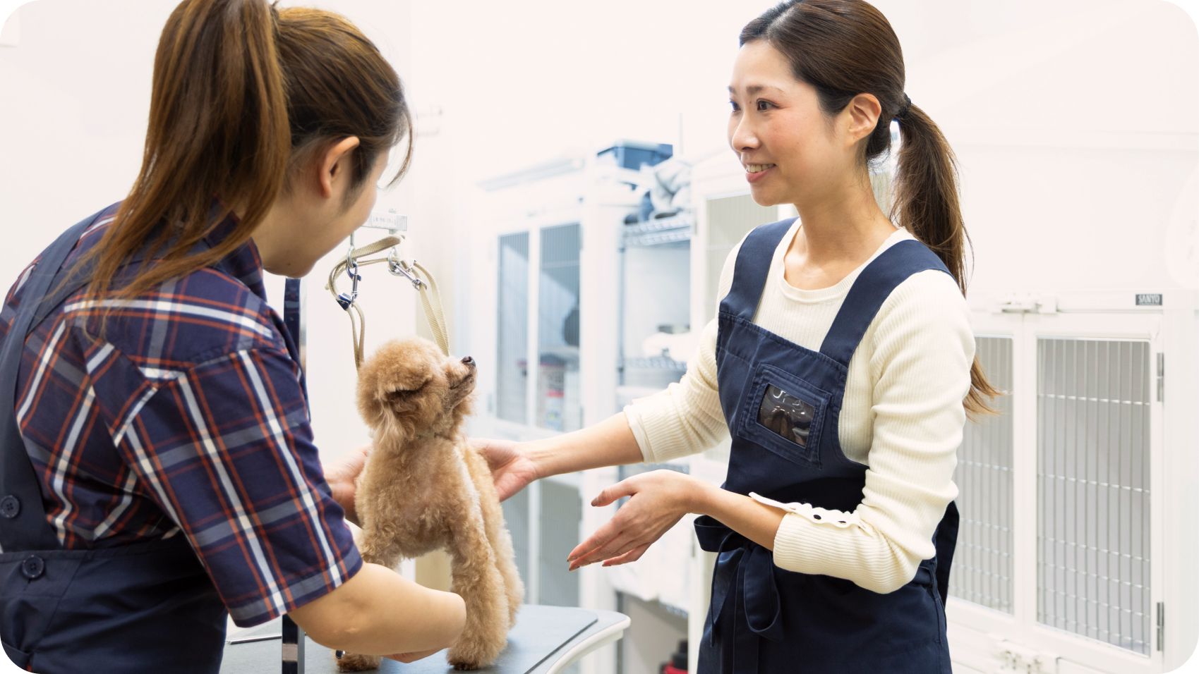現場とのすり合わせに苦労することがあっても、モチベーション高く働けているのは会社の掲げる理念が好きだから。「S-Grooming」というイオンペットのグルーミング手法に代表されるように、わんちゃんの美しさだけでなく健やかな暮らしを守っていきたい。その理念が全ての現場で完璧に体現できているかというと、実際はまだ道半ばです。ただ、その理念を理念で終わらせず、どう現場で実践してもらうかというのが、まさに私の仕事。日々の業務で実際に相対するのはイオンペットの社員ですが、その先にいるお客さまやわんちゃんを想像しながら、すべてのわんちゃんがイキイキと過ごせるサービスを常に提供できる会社にしていきたいと思っています。そして、いずれはイオンペットだけでなく、ペット業界全体が同じ理念を掲げて、同じ想いでわんちゃんに向き合うようになれば、こんなに嬉しいことはありません。