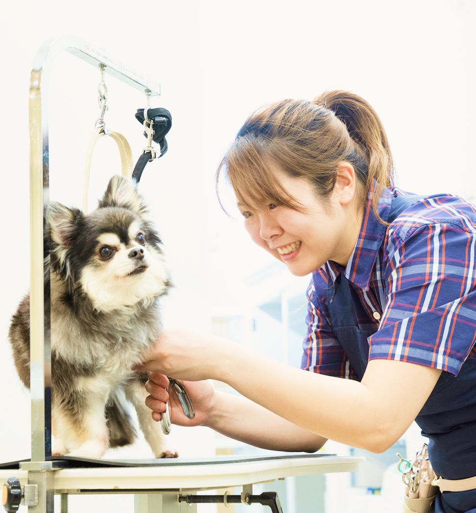 個人の技術習得の状況により異なりますが、新卒のグルーマーの方は1年目の夏頃にはカットデビューできるように研修でもバックアップしております。