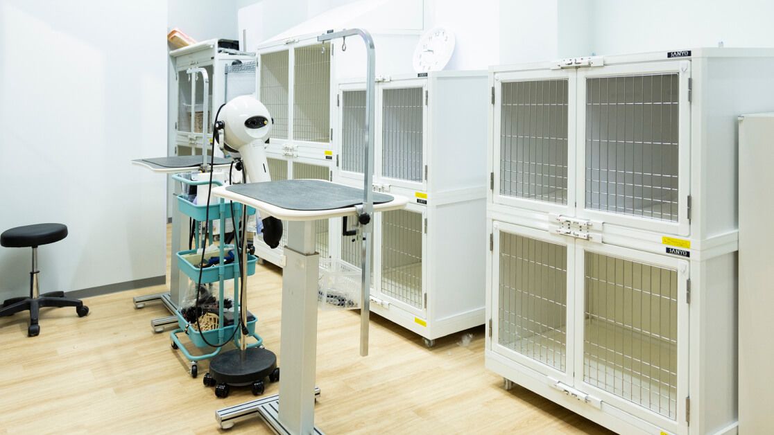 ペットのからだへのやさしさを第一に、獣医学の観点を取り入れたグルーミングを行う設備がございます。