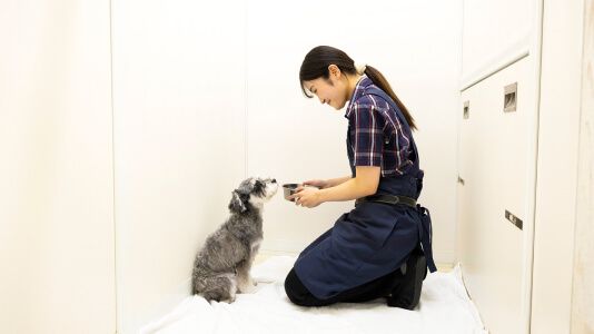 ご予約内容やお名前の確認の後、体調確認を含むカウンセリングを行います。お預かりするペットの健康状態に問題がないことを確認出来ましたら、施術の内容を伺い、お迎え目安時間をお伝えすると共にお預かりさせて頂きます。