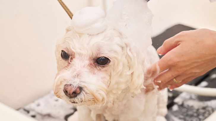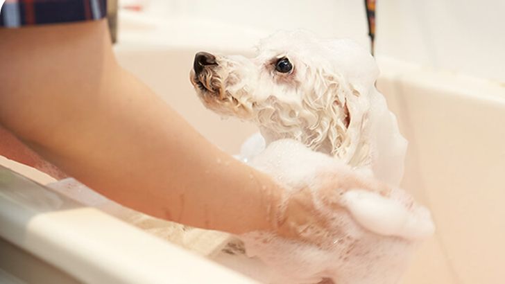 肛門腺絞りを行い、汚れ落としシャンプーの後、泡の力でやさしく汚れを落とす本洗いを行います。本洗い後にはリンスにより、被毛の補修を欠かさず行います。最後に洗い残しのないようにやさしくすすぎます。