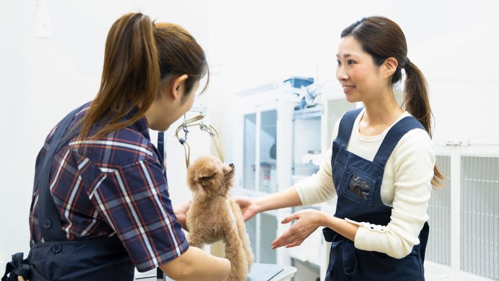 イオンペットでは、グルーマーが技術を最大限に活用できる環境づくりに注力しています。業務改善の一環として、ネット予約の導入や予約電話のコールセンター対応(順次導入中)を進行中です。これによって、グルーマーの技術に集中でき、より良いサービスを提供する環境を整えています。